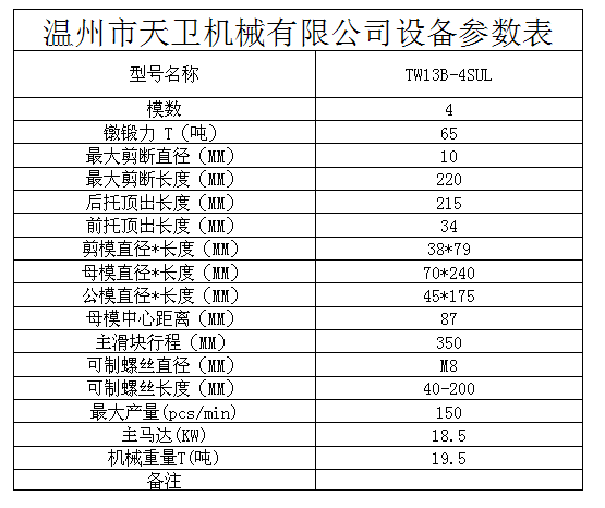 Current location:Home  / Products  / Four die four punch cold heading machine  / └ TW13B(M8) / TW13B-4SUL fully automatic multi station cold heading machine